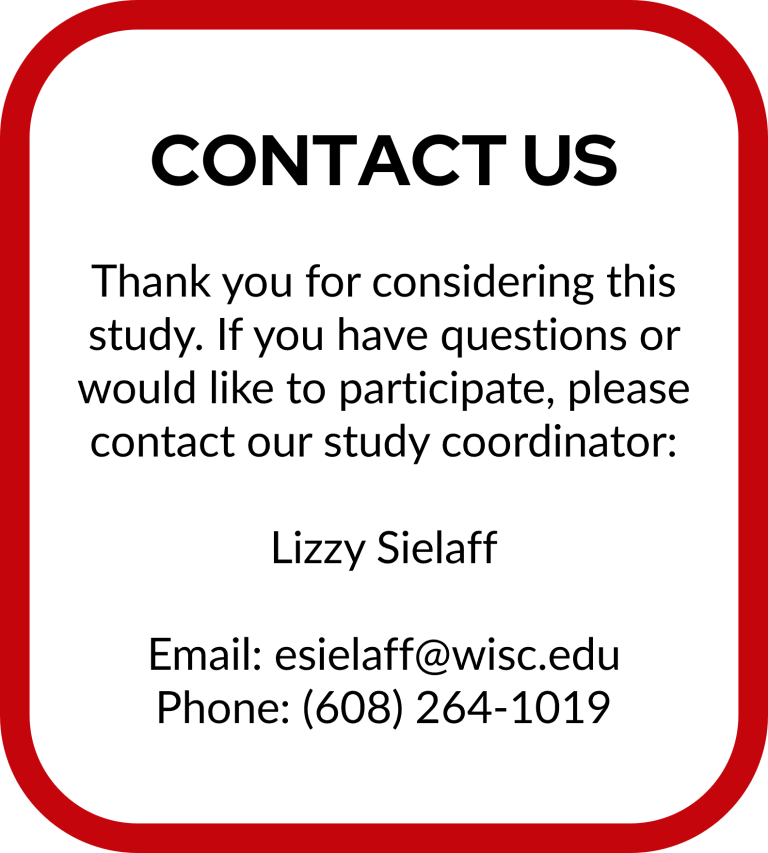 If you have any questions or concerns about the TalkTracker app or SPEAK-AD study, please email us at speakad.ccandl@wisc.edu or call us at (608)262-6904.